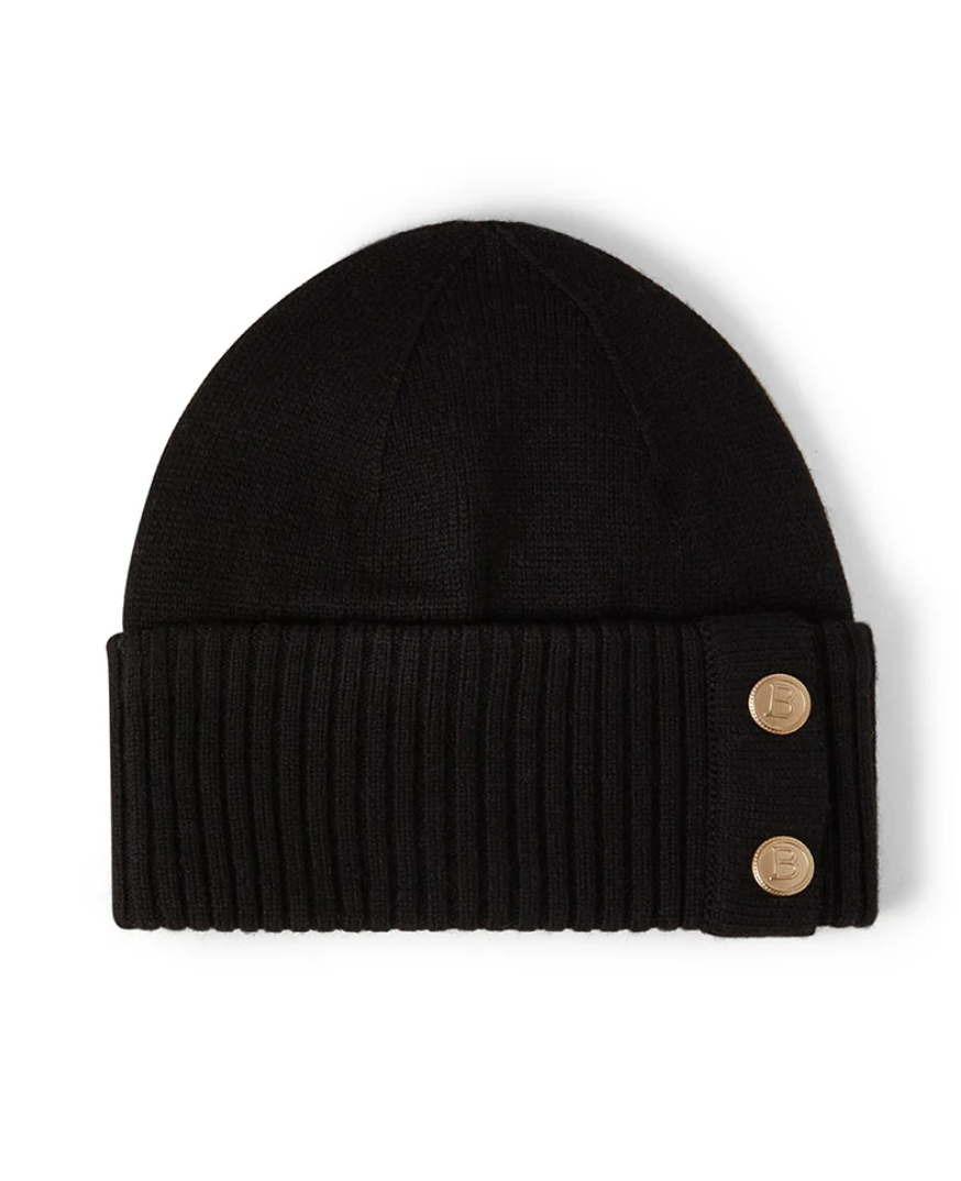 Bunnen på luen er brettet og detaljer med gylne B-knapper.