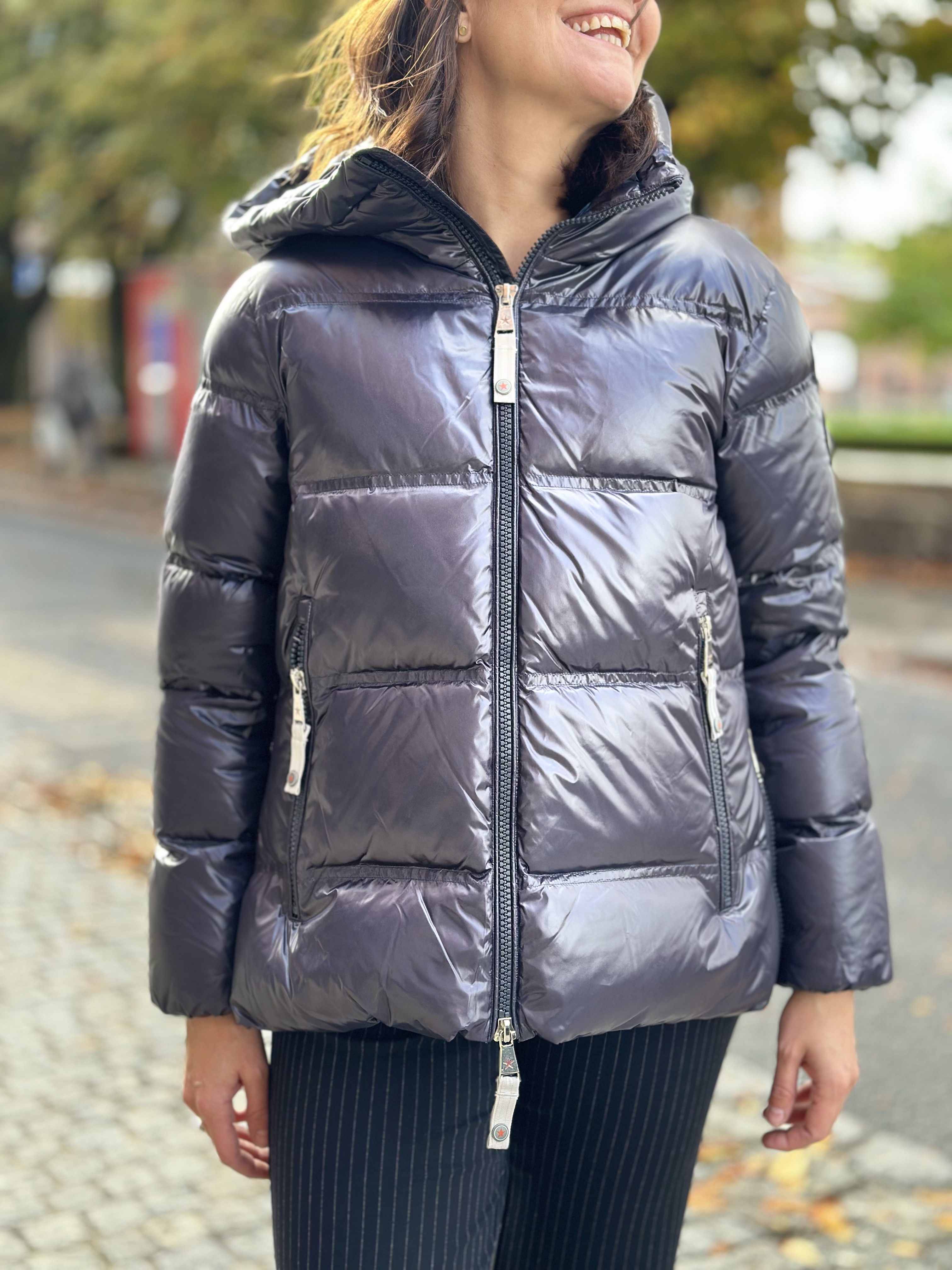 Lekker kortere dunjakke med glidelåsdetaljer i siden.