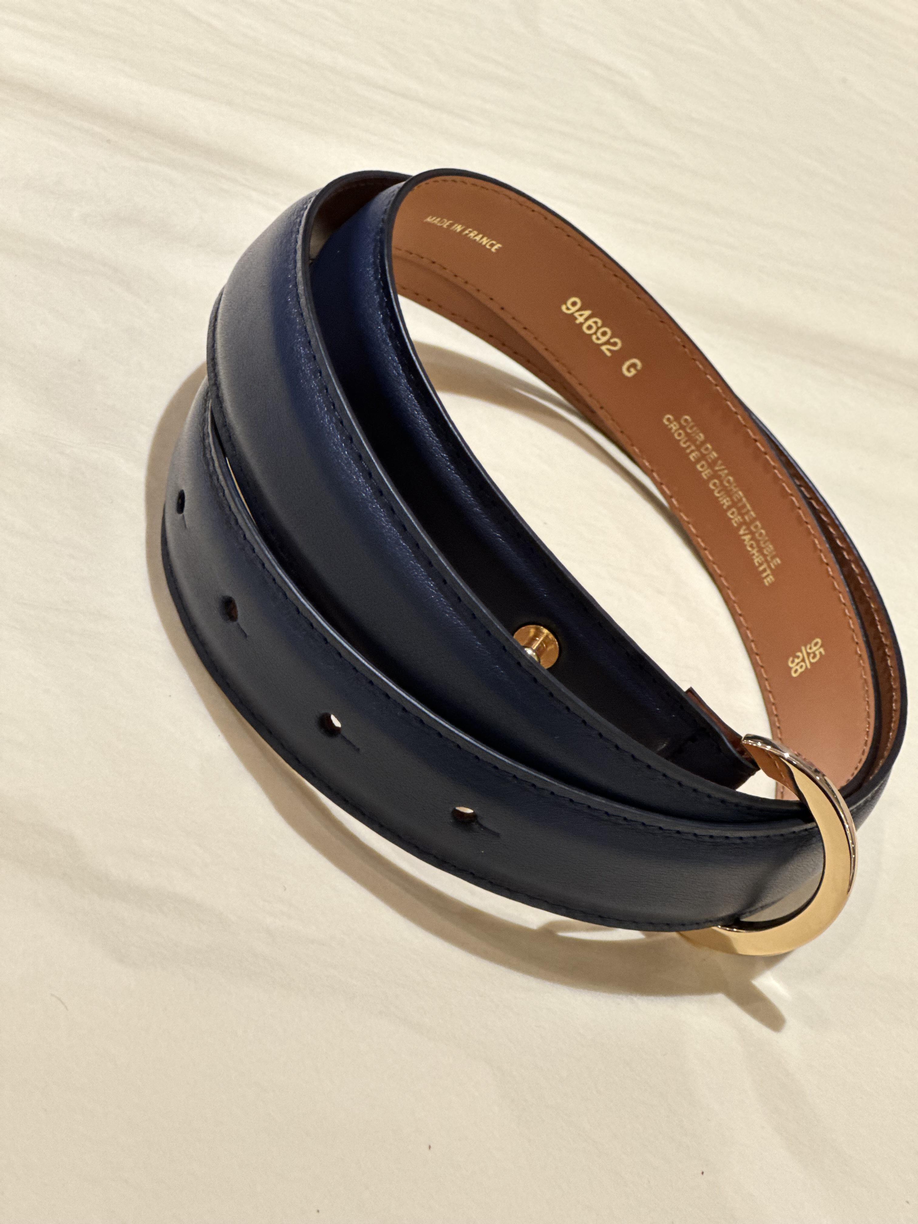 Beltet har rund og gullfarget beltelås og beltelinningen kommer i en lekker lik farge.