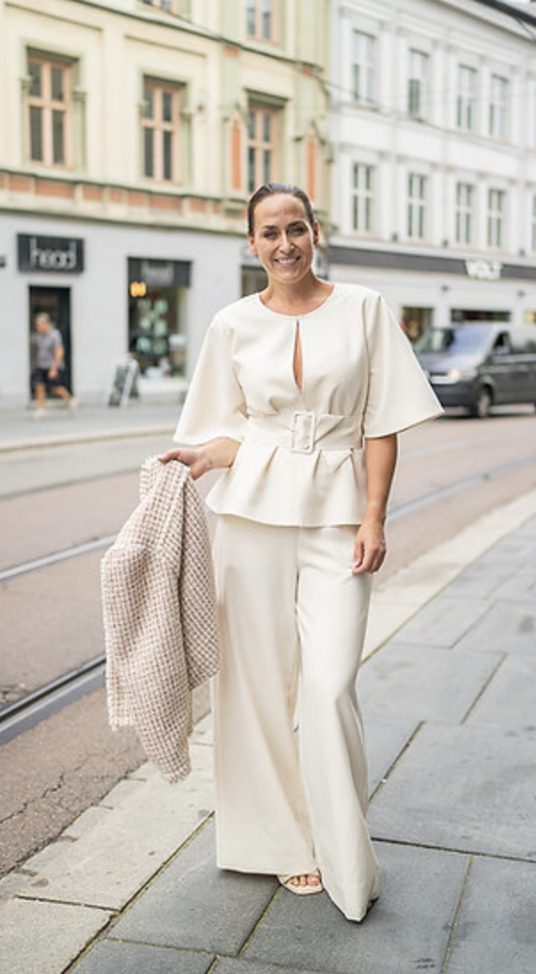 Den er laget i et elastisk og flatterende stoff.