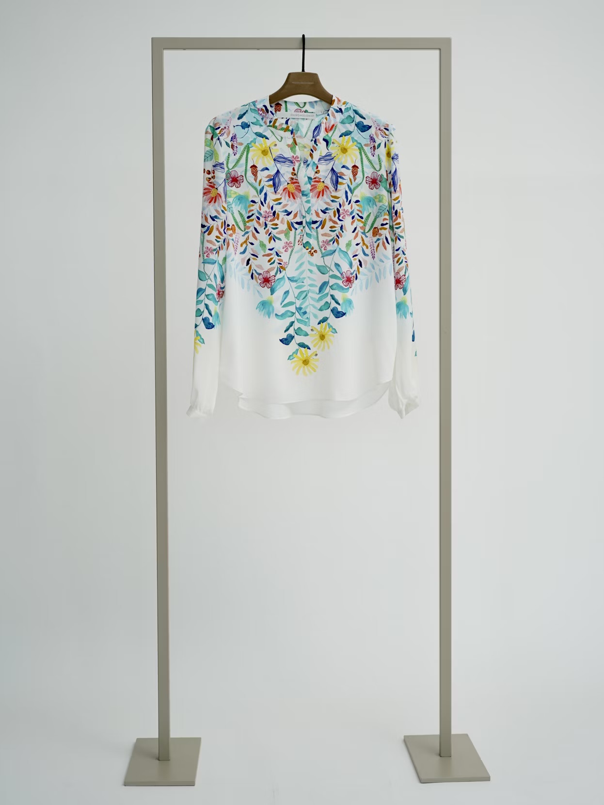vakker silketunika bluse med blomstermønster i herlige farger.