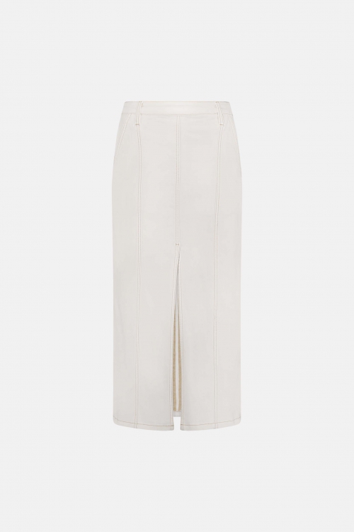 Tøft skjørt med stikklommer, splitt i front og glidlås bak.