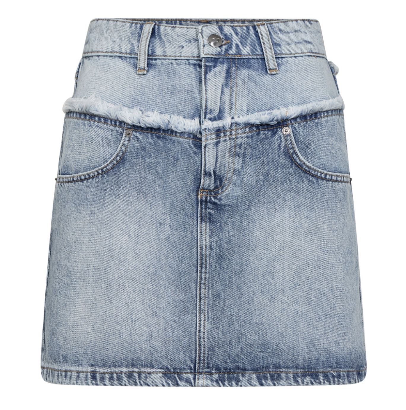 Råtøft skjørt i faded denim.