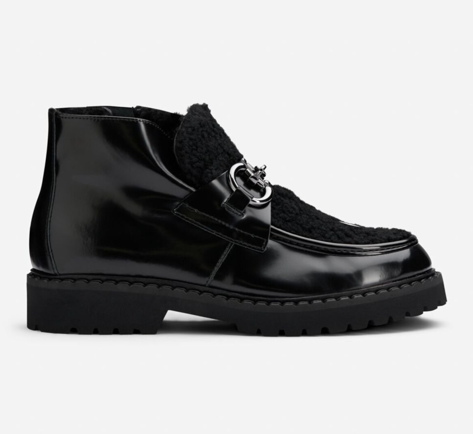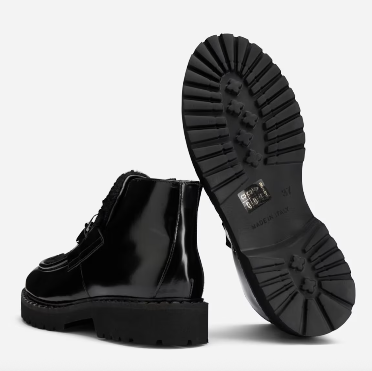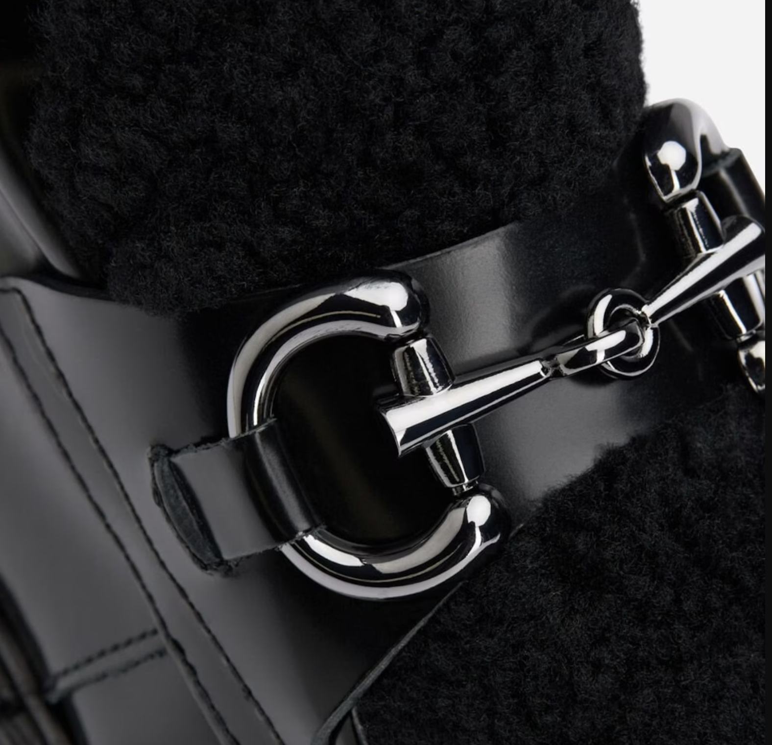 Over frontpartiet er skoene detaljert med shearling, et mykt og varmt materiale som gir en unik tekstur og et iøynefallende element til designet.