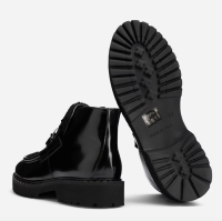 Tøffe skoletter laget av glatt og blankt skinn, et materiale som gir et luksuriøst og polert utseende.
