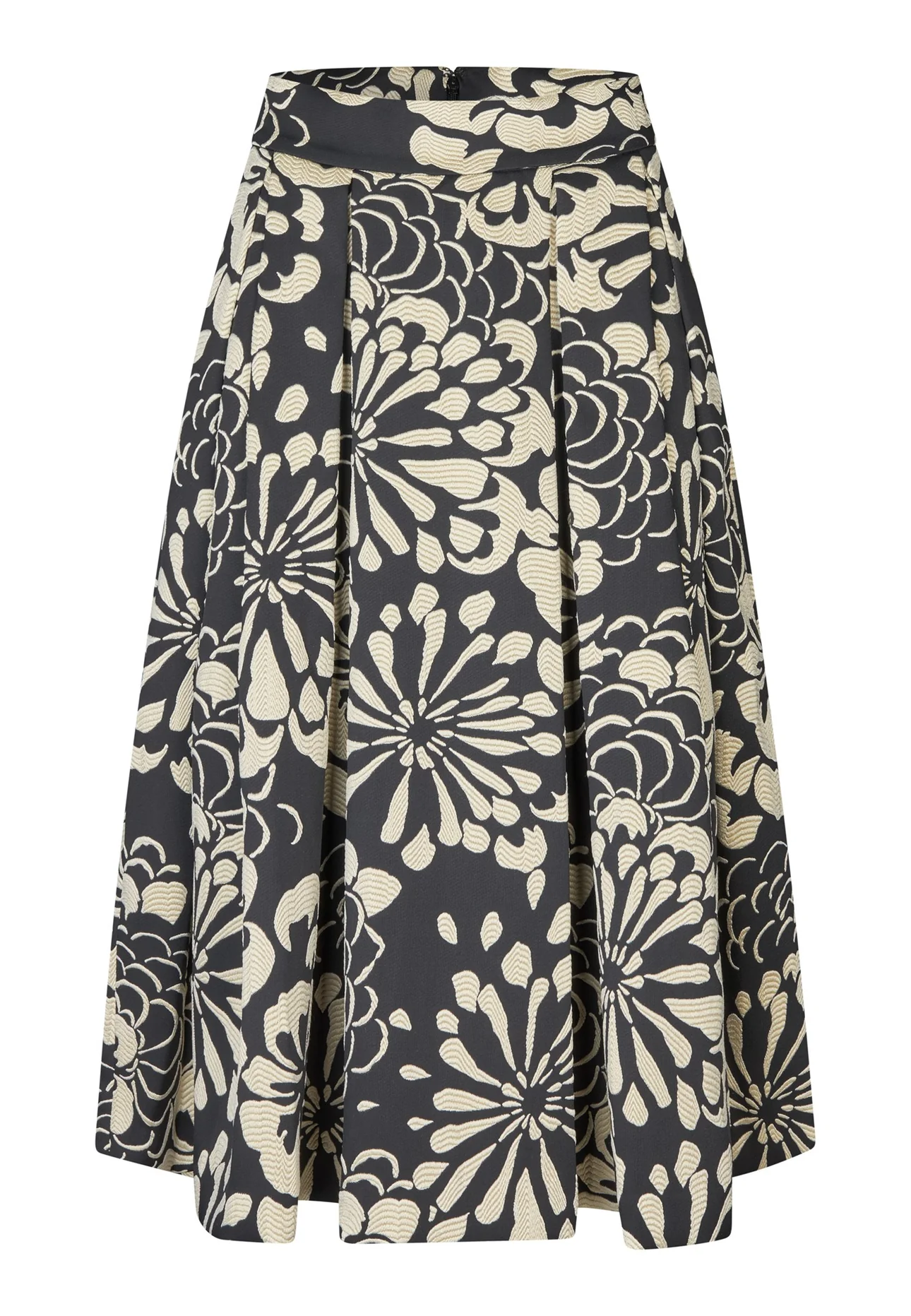 Et dramatisk, overdimensjonert blomstrete jacquard skjørt.
