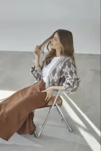 Row Check Cardigan Walnut fra Co´Couture.