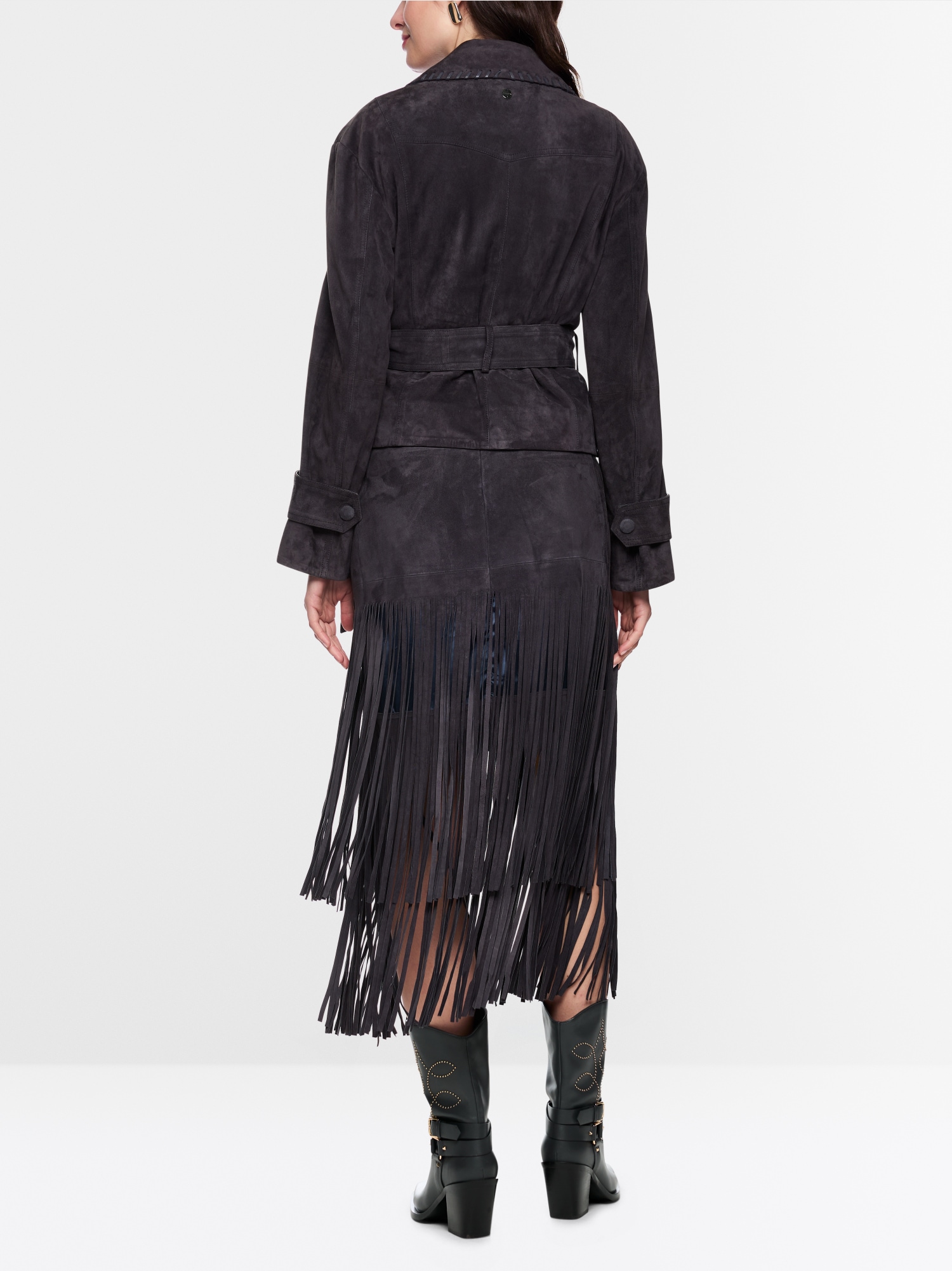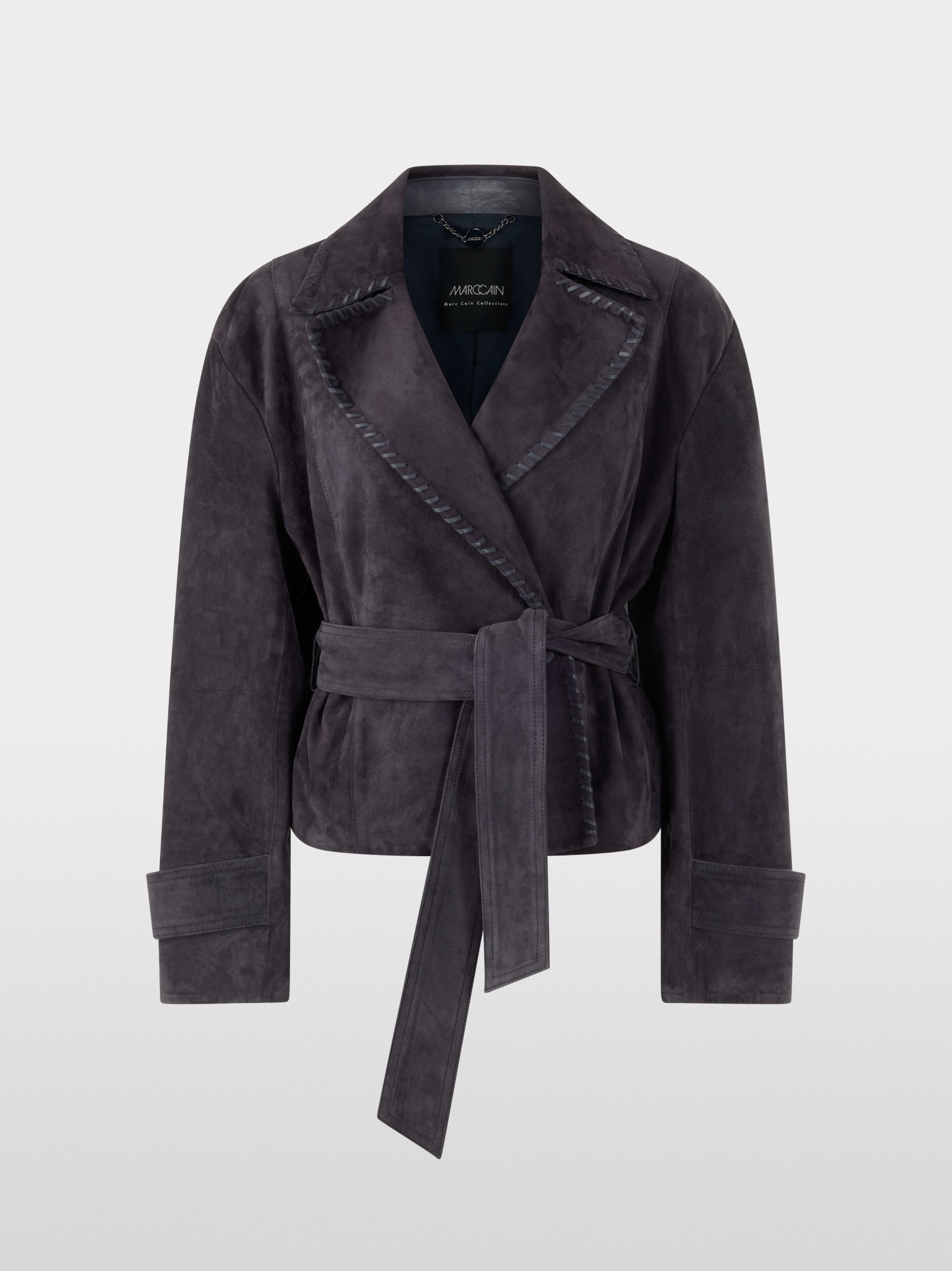 Eksklusiv jakke laget av det fineste ekte skinn med belte som fremhever midjen.