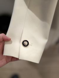 Den har to knapper i front, med passpolerte lommer og ermsplitt med en lekker knapp.