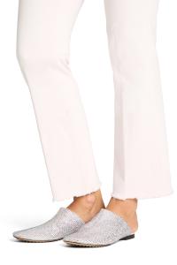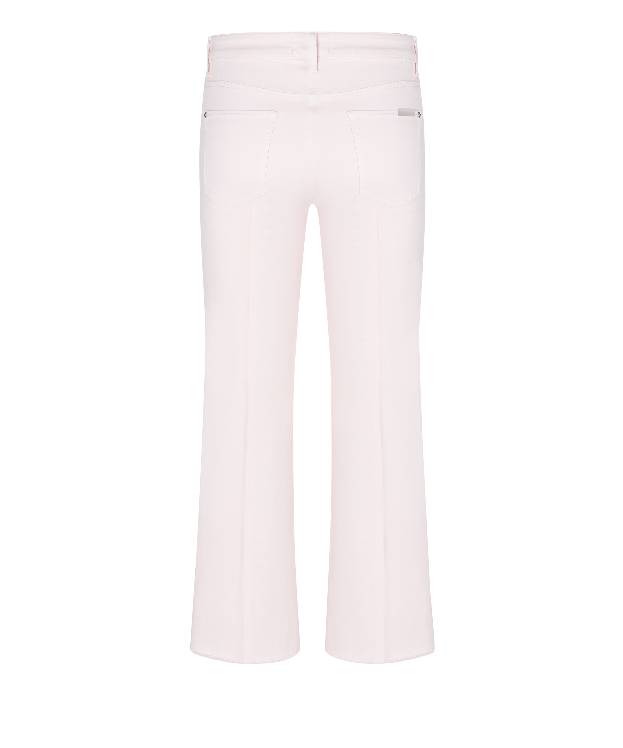 Buksen er i svak rosa vask og er en klassisk 5-lommers modell som sitter fint over hofter og lår før den faller ut i en liten flare fra kneet og ned.