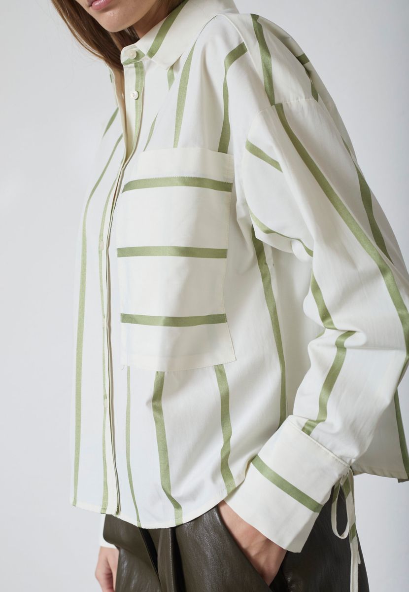 Fresh skjorte som er kremfarget med grønne striper.