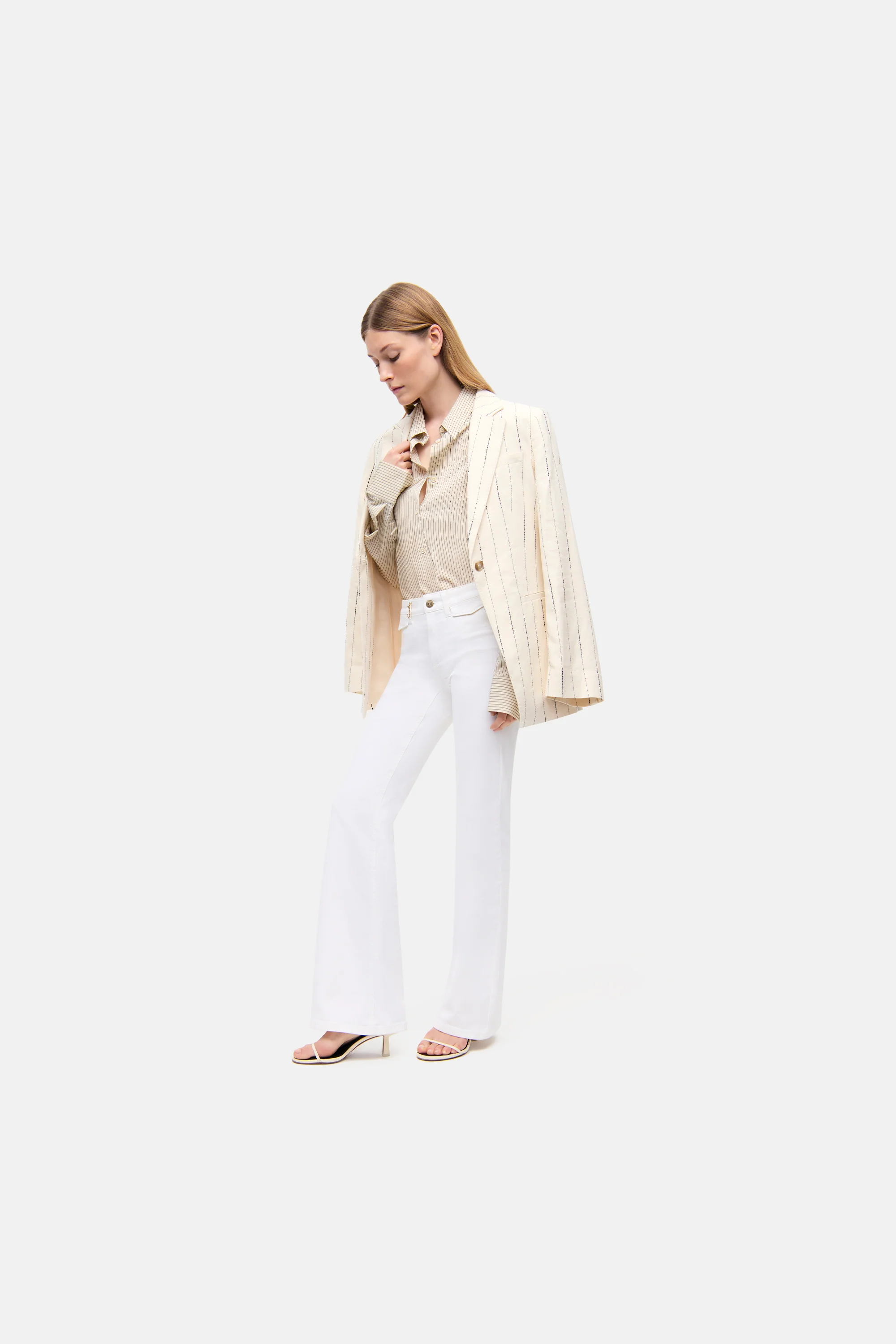 Buksen har lette utsvingte ben og med en silhuett som er feminin og moderne.