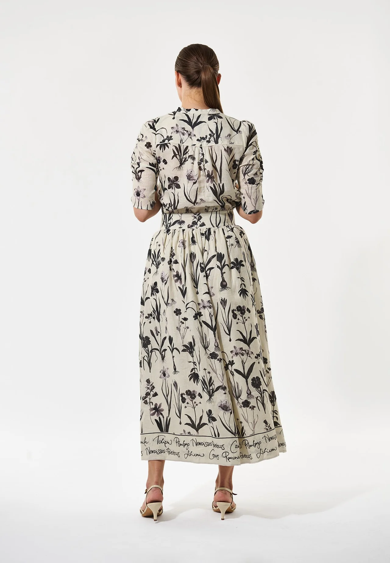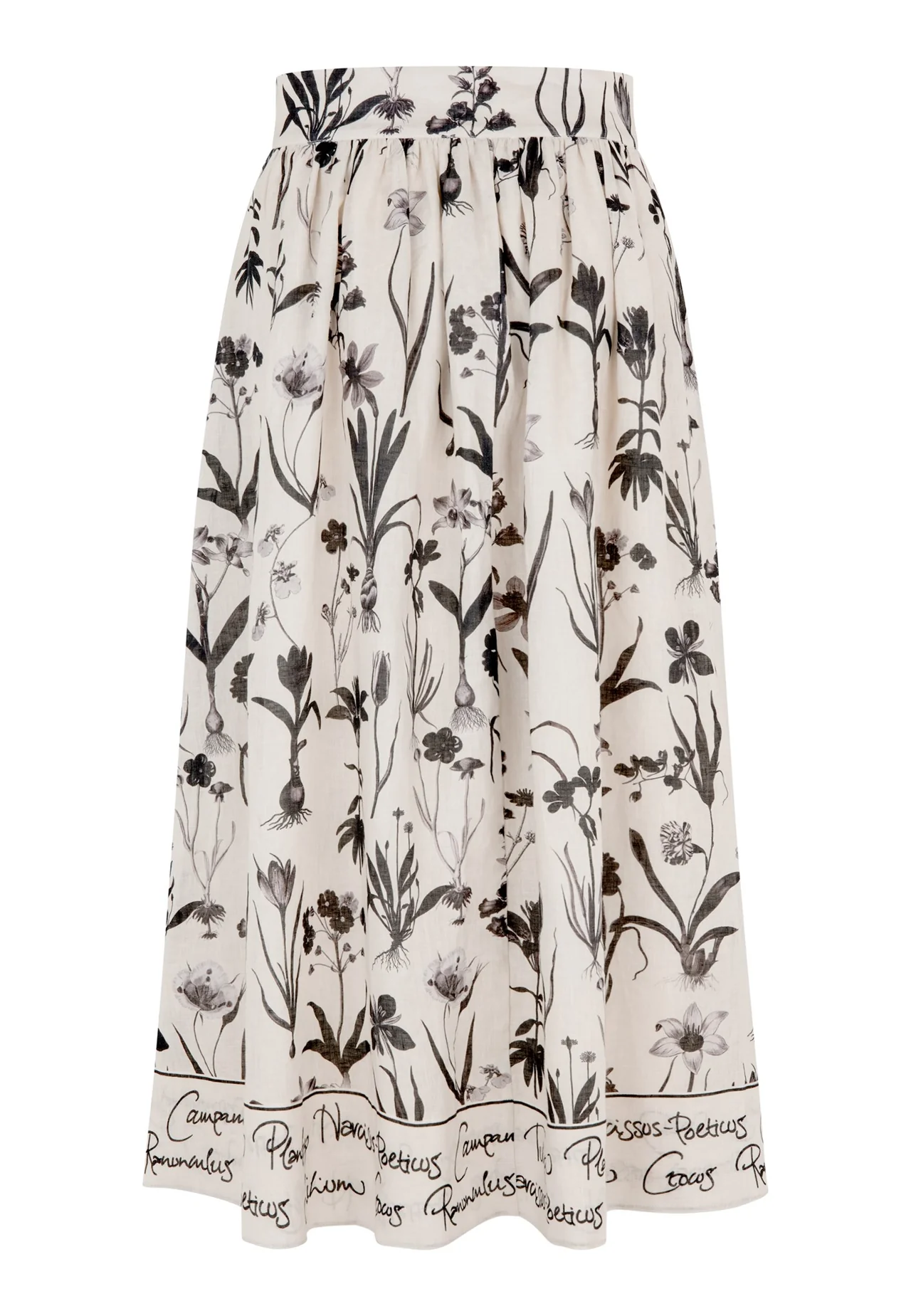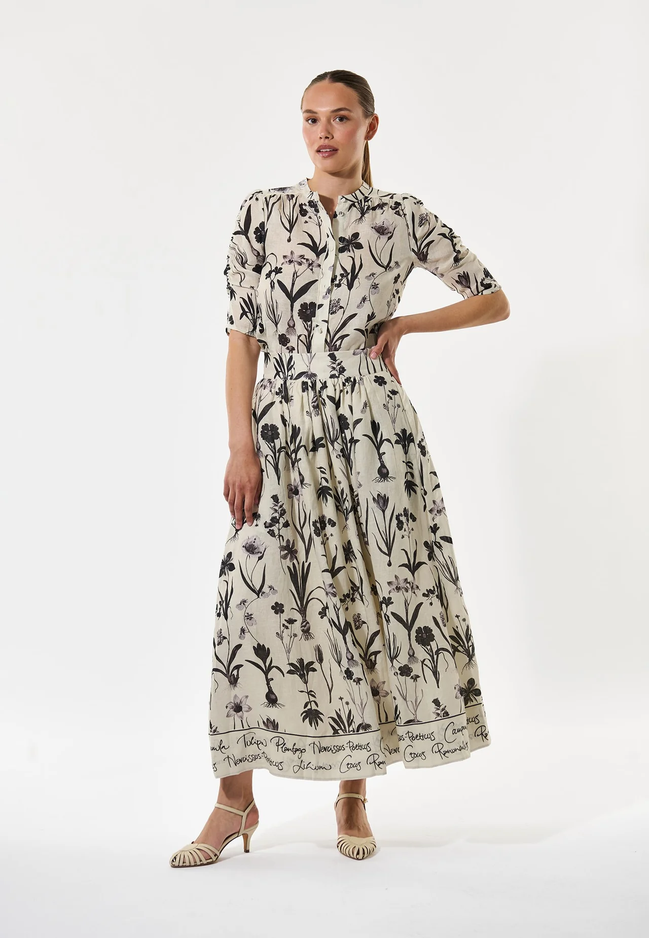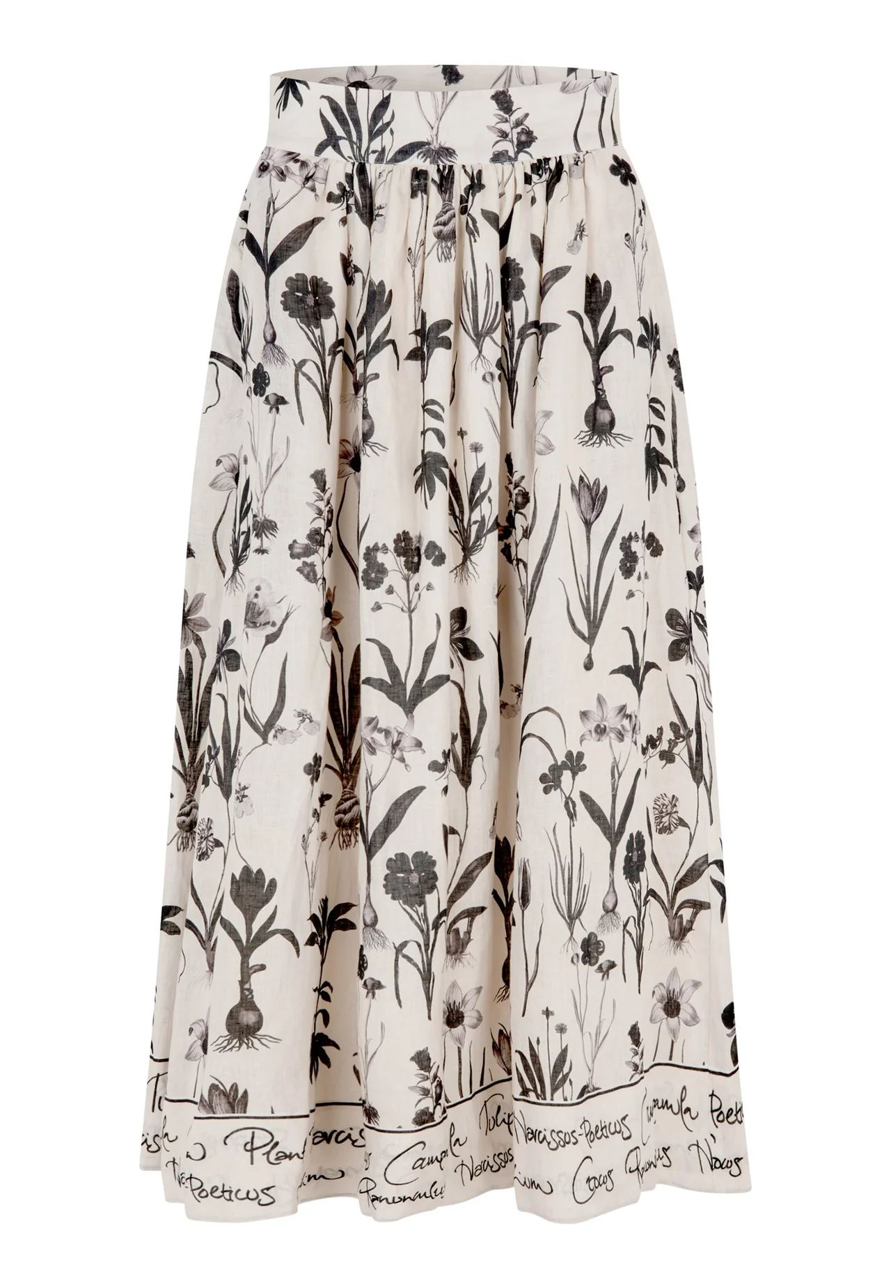 Nydelig feminint og avslappet skjørt, med et dristig trykk av botaniske tegninger.