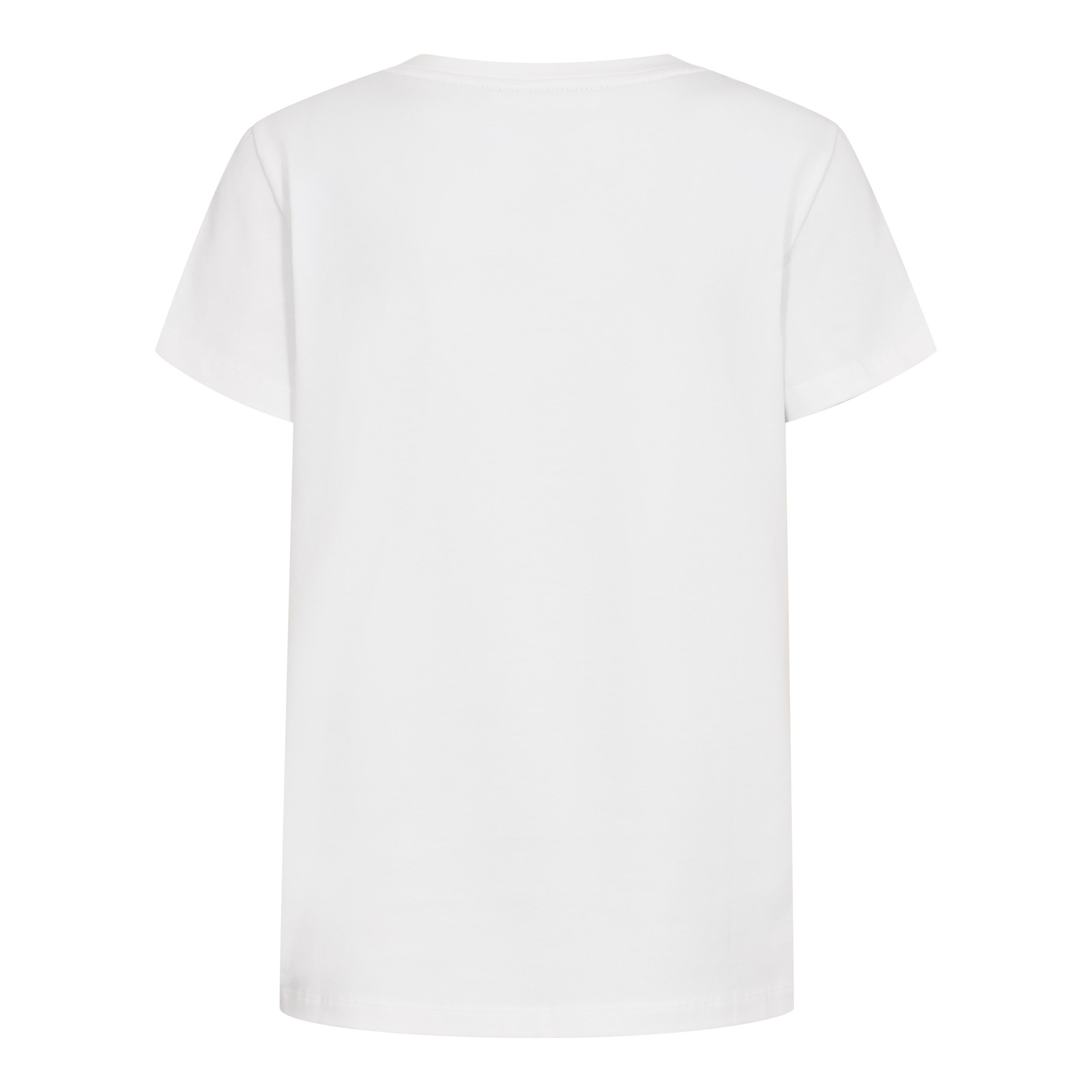 En klassisk hvit T-skjorte med logo, rund hals og kort erme.