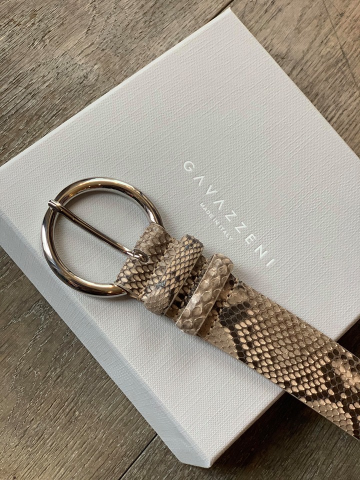 Råtøft belte laget av pytonskinn med lekker rund spenne.