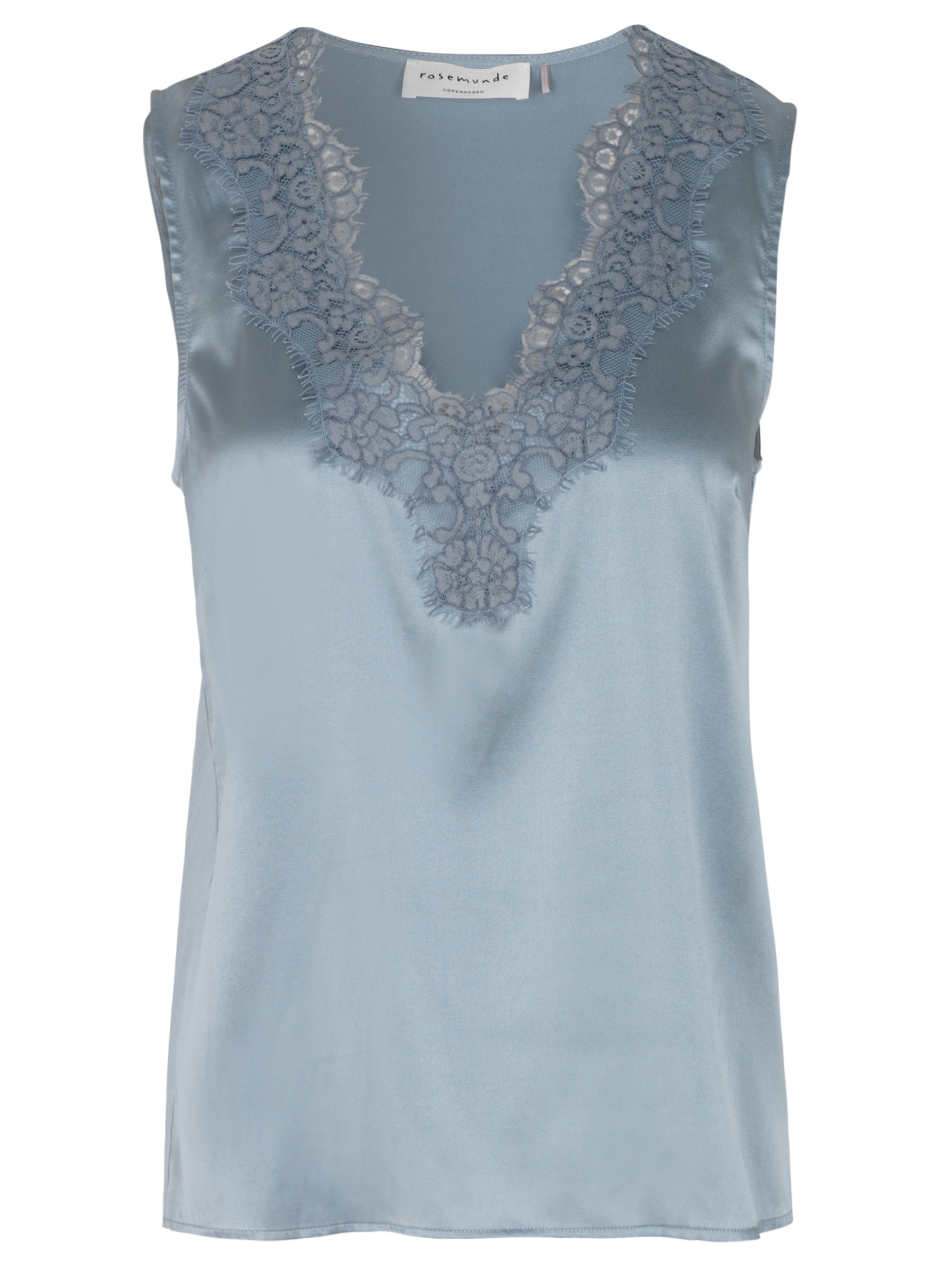 Nydelig silketopp uten ermer og med vakker blondekant.