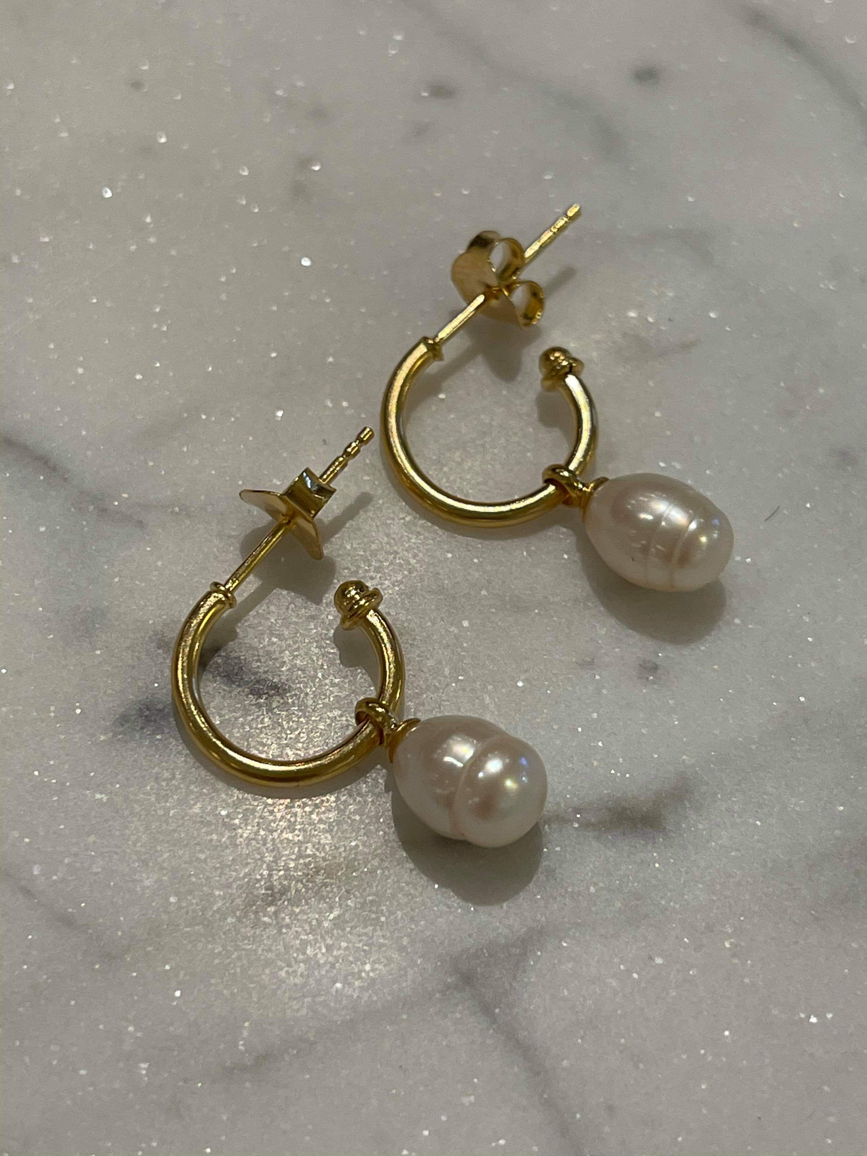 Nydelige gullbelagte øredobber med ferskvannsperle fra MIMI ET TOI.