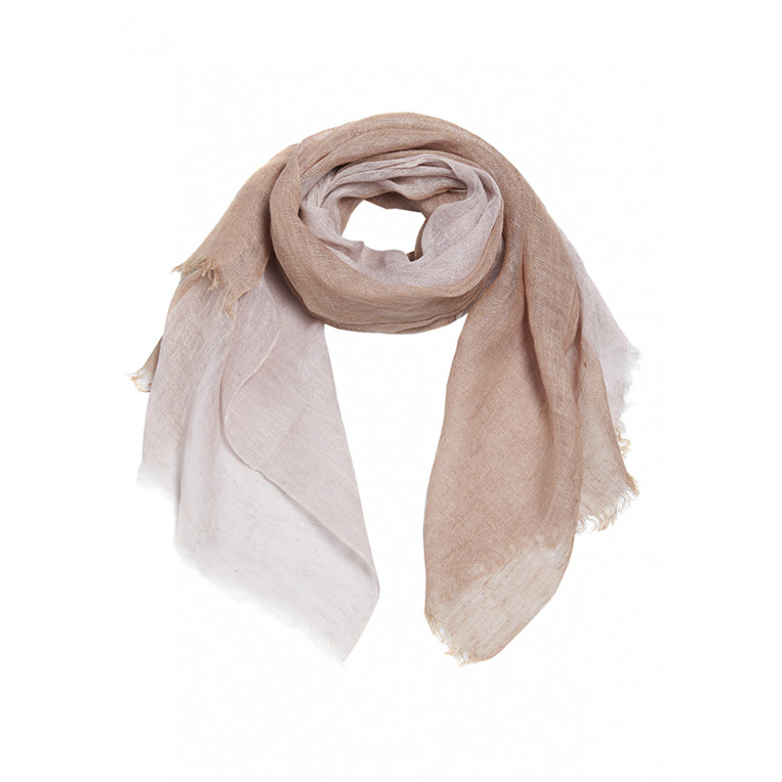 Lekkert skjerf i fin lin. Det er farget med pastellnyanser, som mykt veksler mellom mørke og lyse farger. En myk og herlig kvalitet. Skjerfet har frynser i endene.