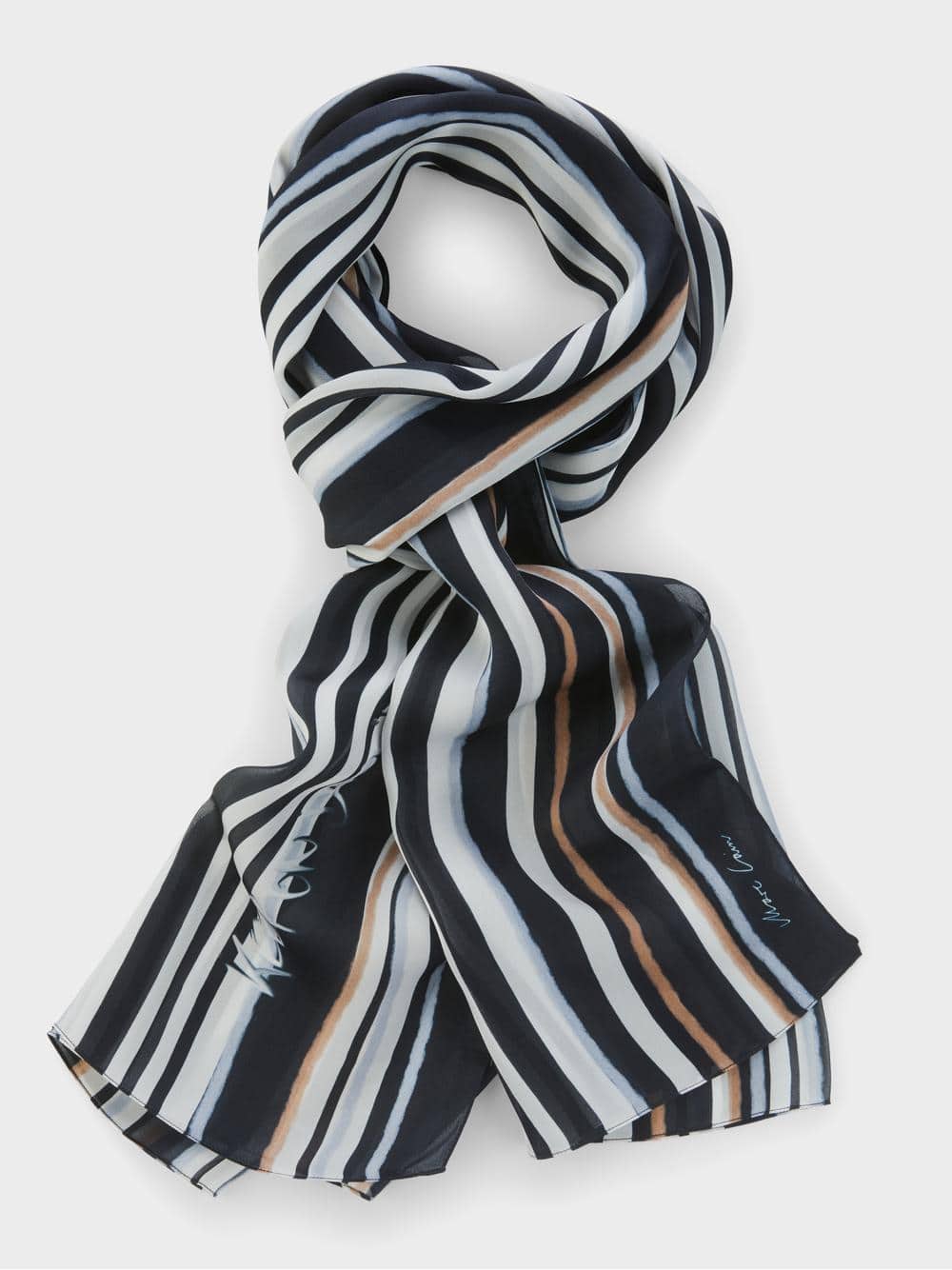 Lekkert skjerf i stripet flerfarget mønster.