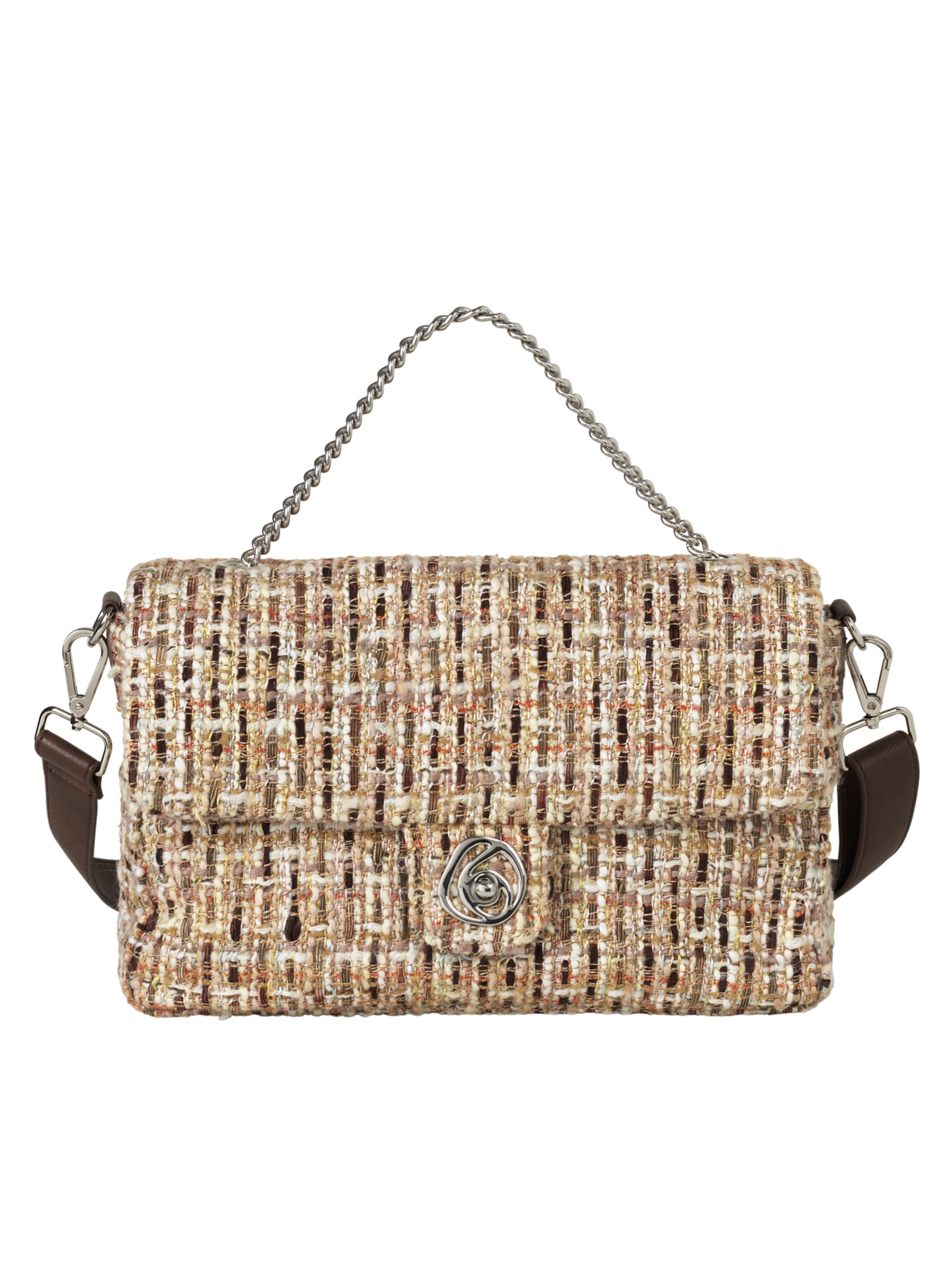 Denne vesken er veldig stilig og er et vakkert tilbehør til ethvert antrekk. Det er god plass i denne vesken, og den passer perfekt til mange forskjellige anledninger. Vesken lukkes med en knapp og har kjede og avtagbar og justerbar stropp.