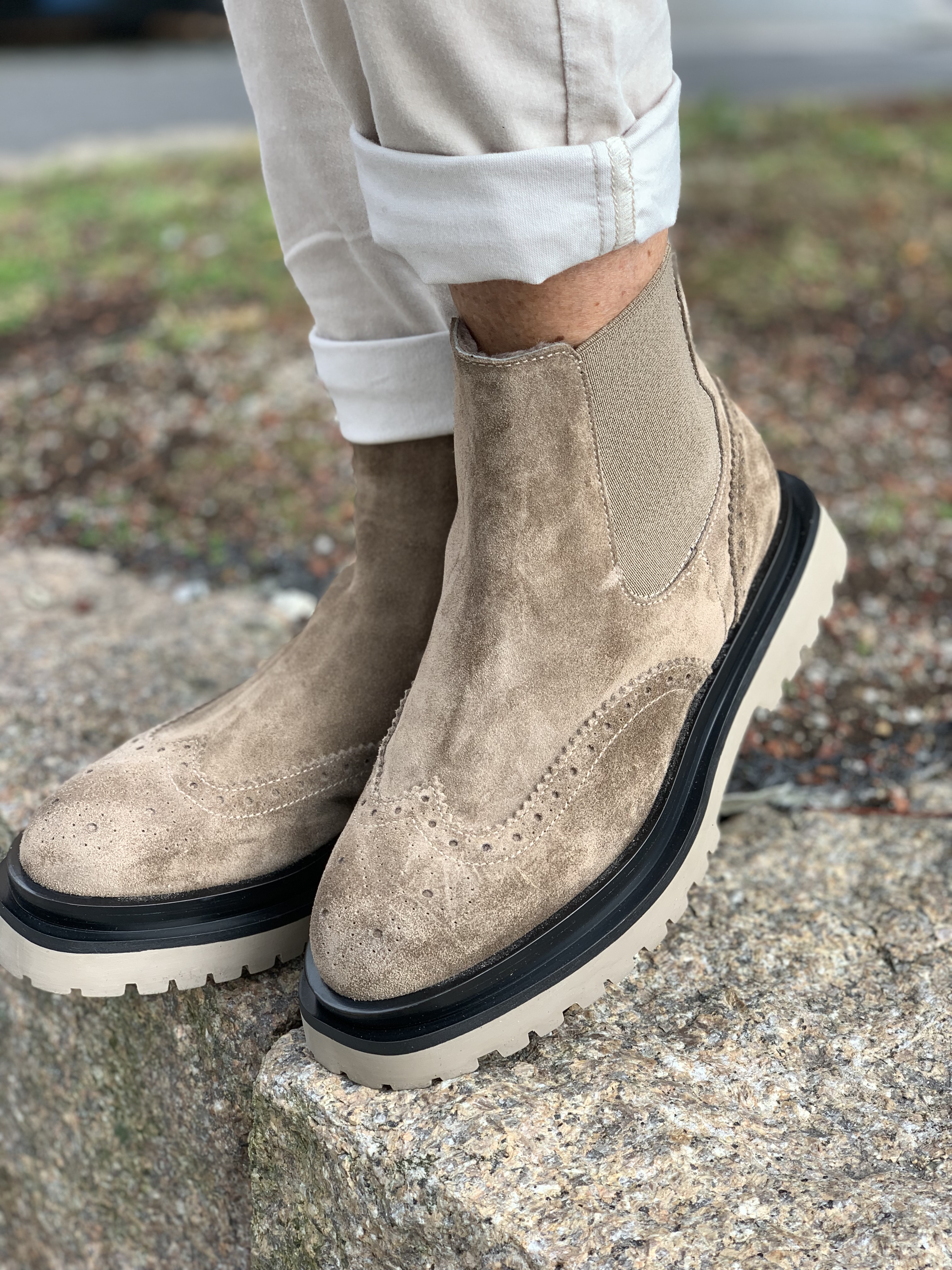 Lekker ankelstøvlett med mønster, sort kant ved såle, strikk i siden og deilig mykt for.