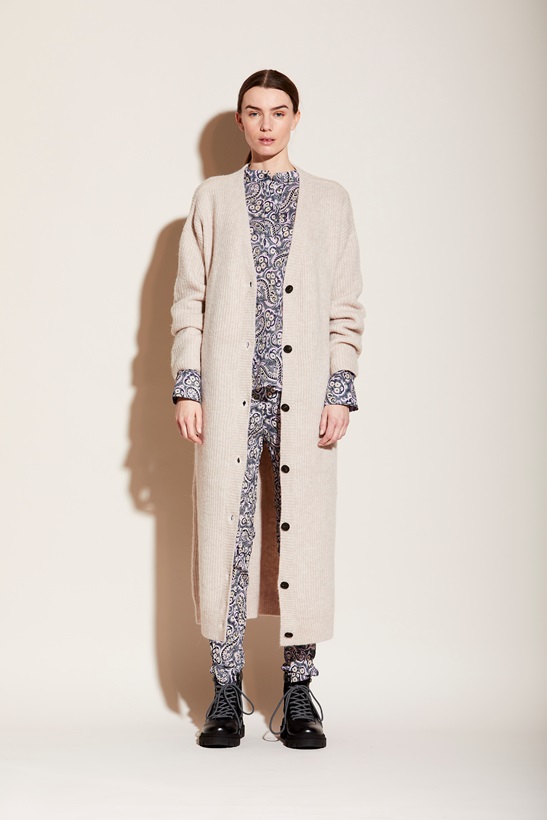 Lang cardigan med løs passform med lange volumiøse ermer,