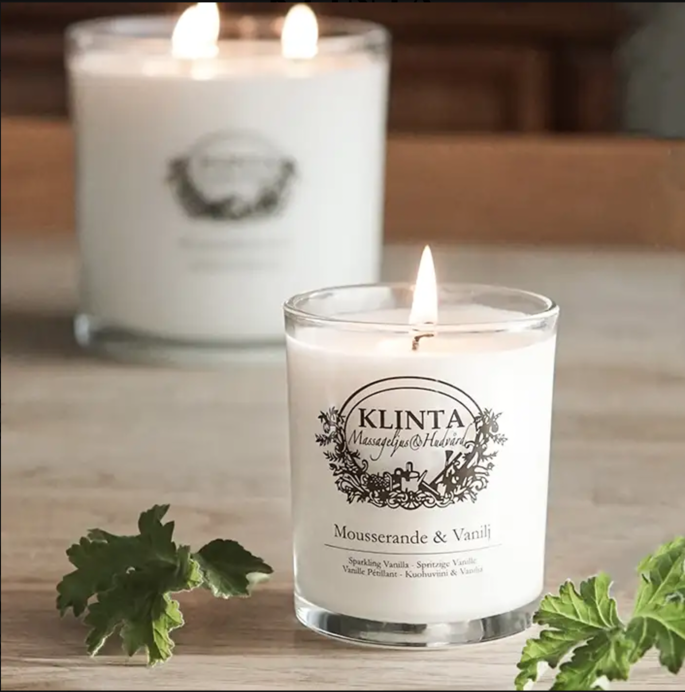 Duftlys Mousserende og Vanilje |Lite massasje og duftlys fra Klinta