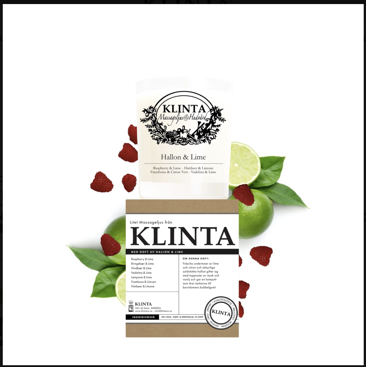 Duftlys Bringebær og lime |Lite massasje og duftlys fra Klinta