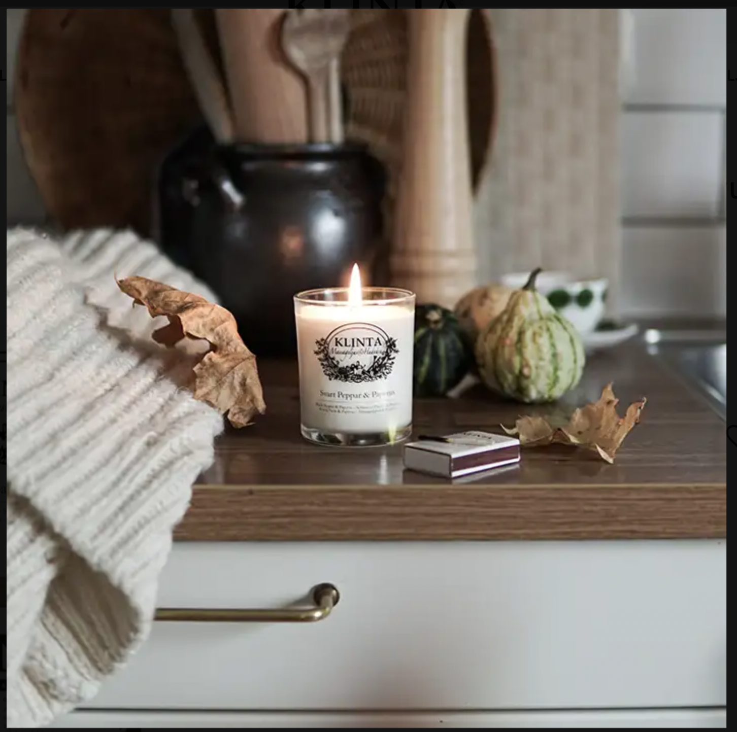 Duftlys Svart pepper og papyrus |Lite massasje og duftlys fra Klinta
