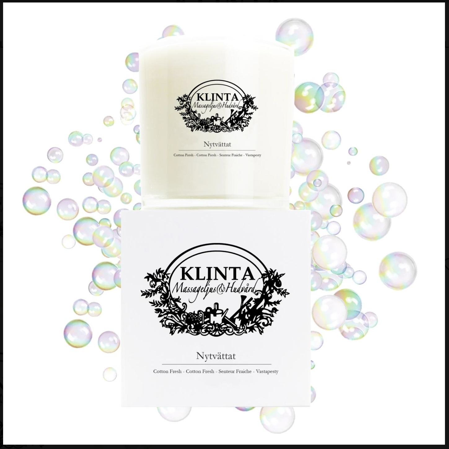 Stort duftlys Nytvättat |Treveket stort massasje og duftlys fra Klinta