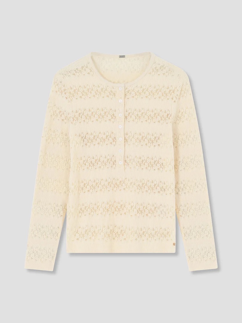 Deilig langermet t-shirt med mønster i stoffet og knappestolpe.