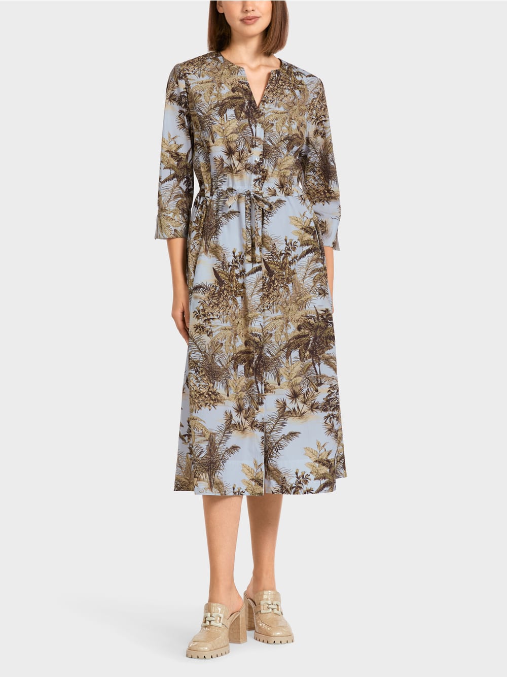 Herlig kjole med snøring i midjen, designet er krageløst og har en knappestolpe i full lengde.