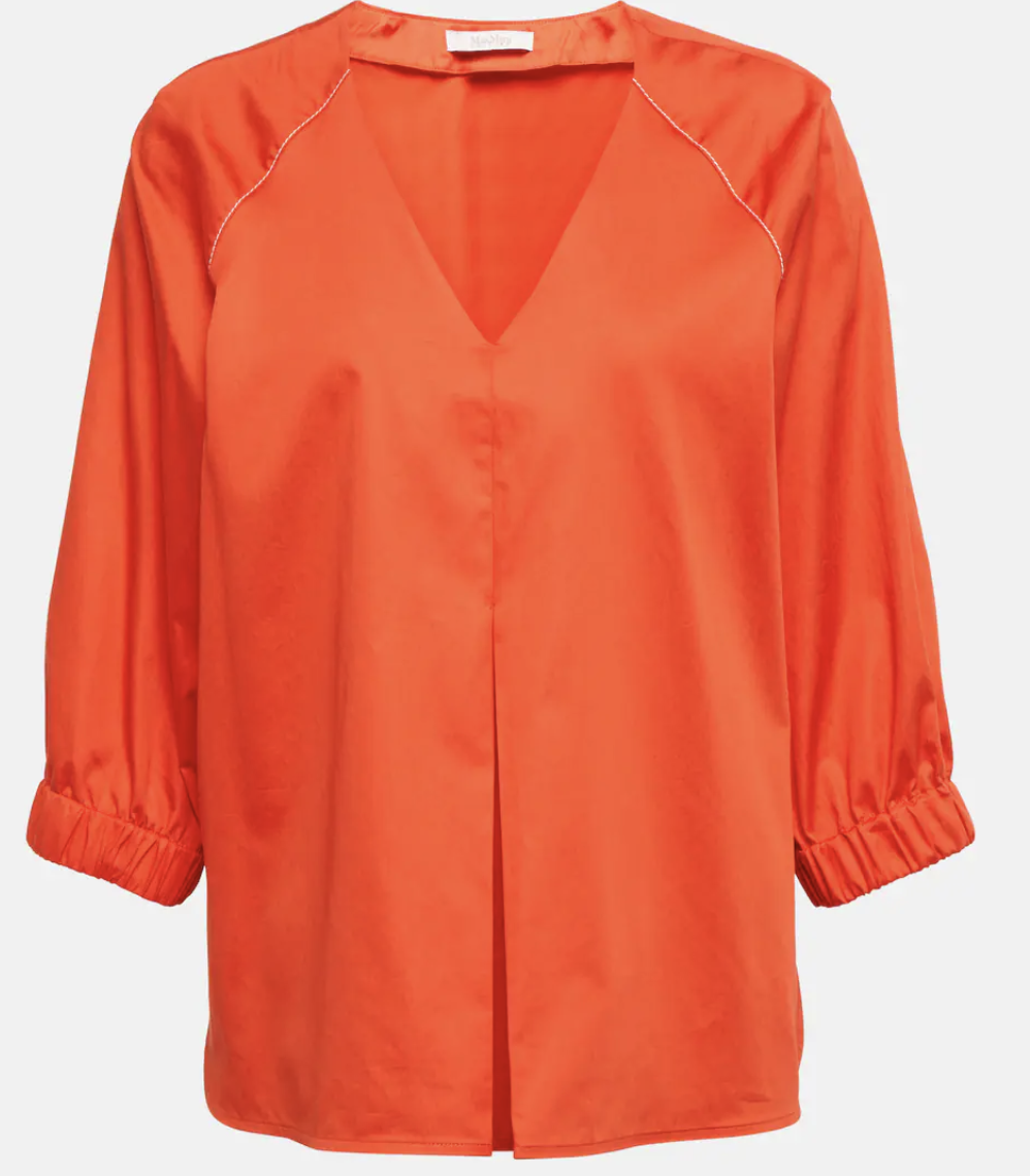 Denne blusen fra Max Mara har V-hals og trekvart elastiske ermer.