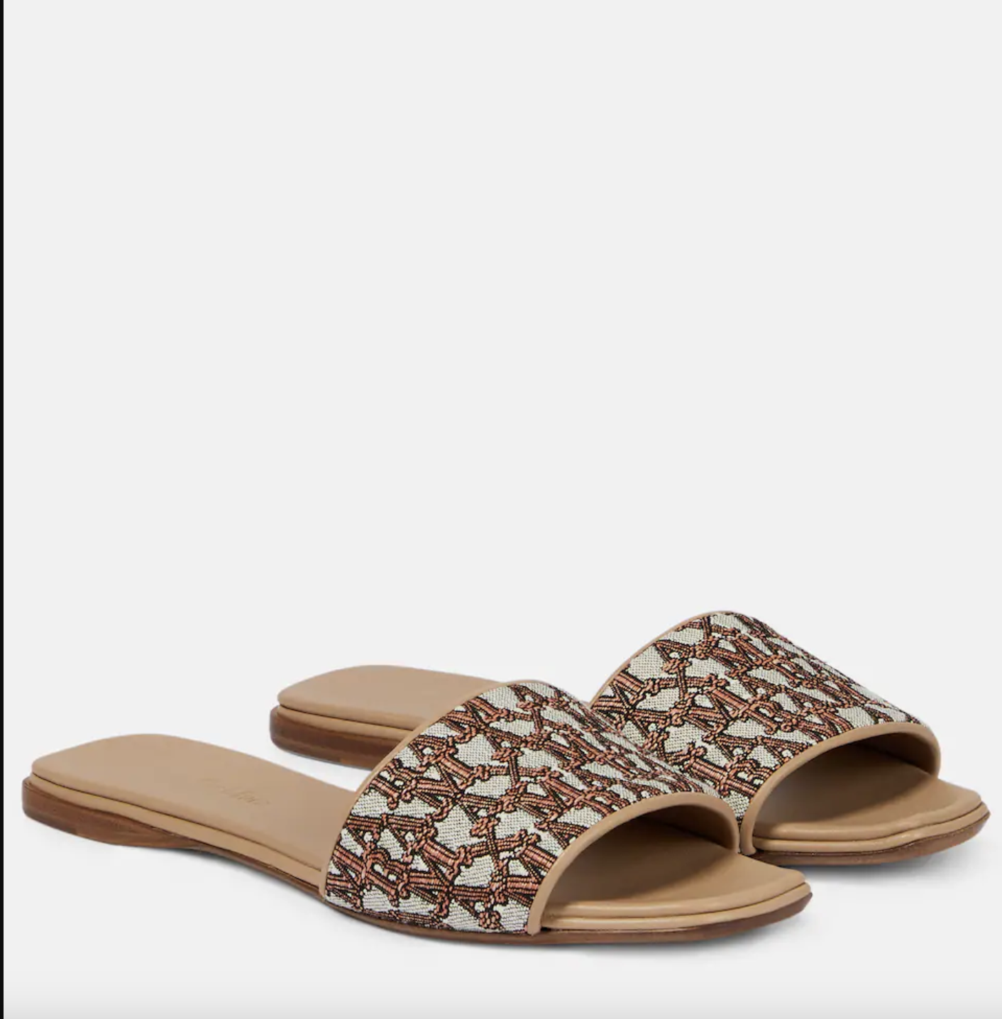 Flate sandaler med bredt polstret bånd laget av raffia-effekt stoff med en all-over MaxMaraGram jacquarddesign.