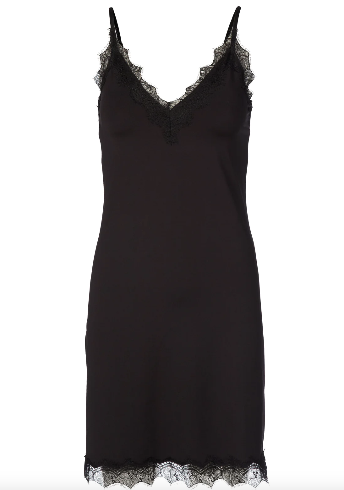 Lekker stroppekjole med blondedetaljer, v-hals og justerbare stropper.