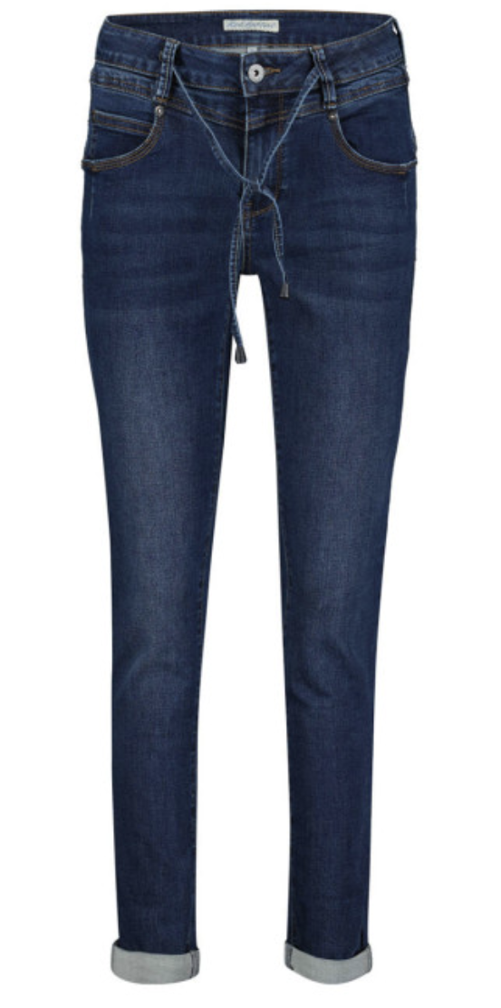 Nydelig jeans med glidelås, knepping og snøring i livet.