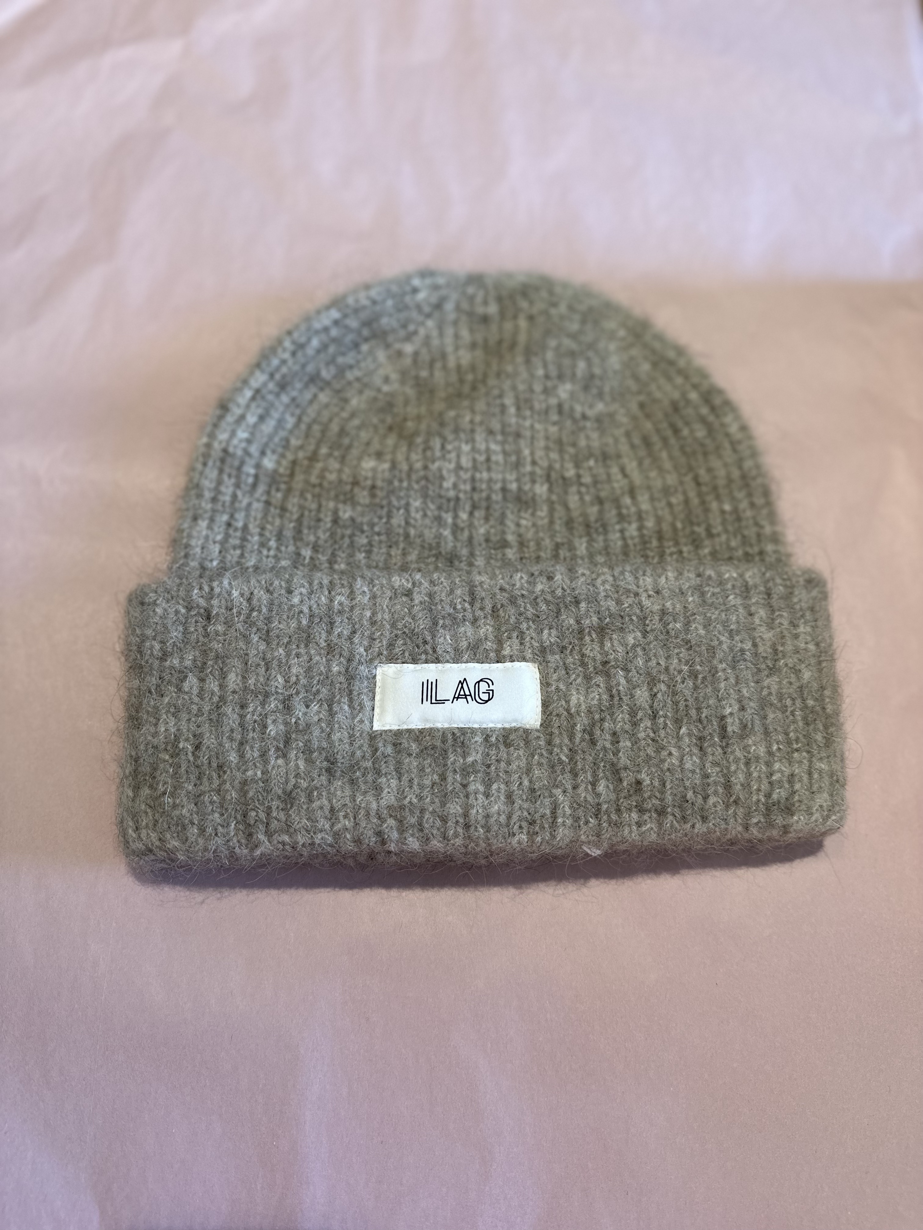 Runde Light Sand Melange Beanie Lue fra ILAG.