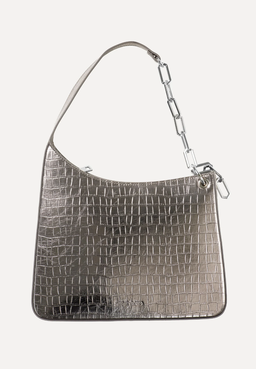Vesken har også et krokodille print i sølv som gir hele vesken det lille ekstra.