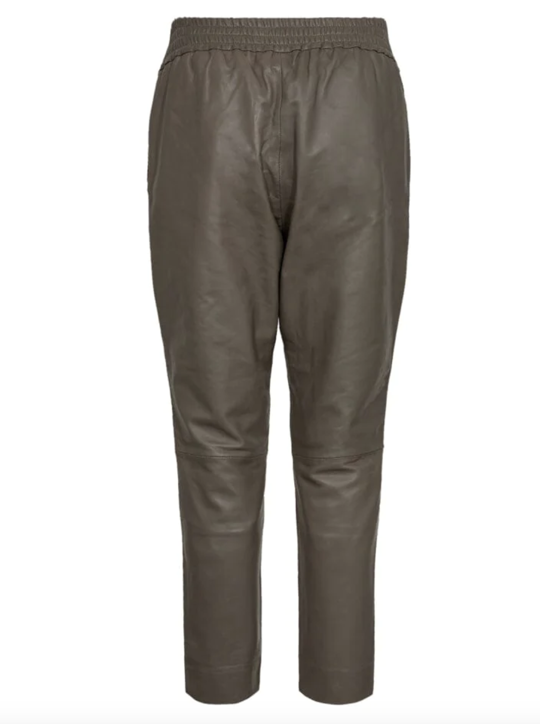 Lekker bukse i skinn med strikk i livet og rett fasong.