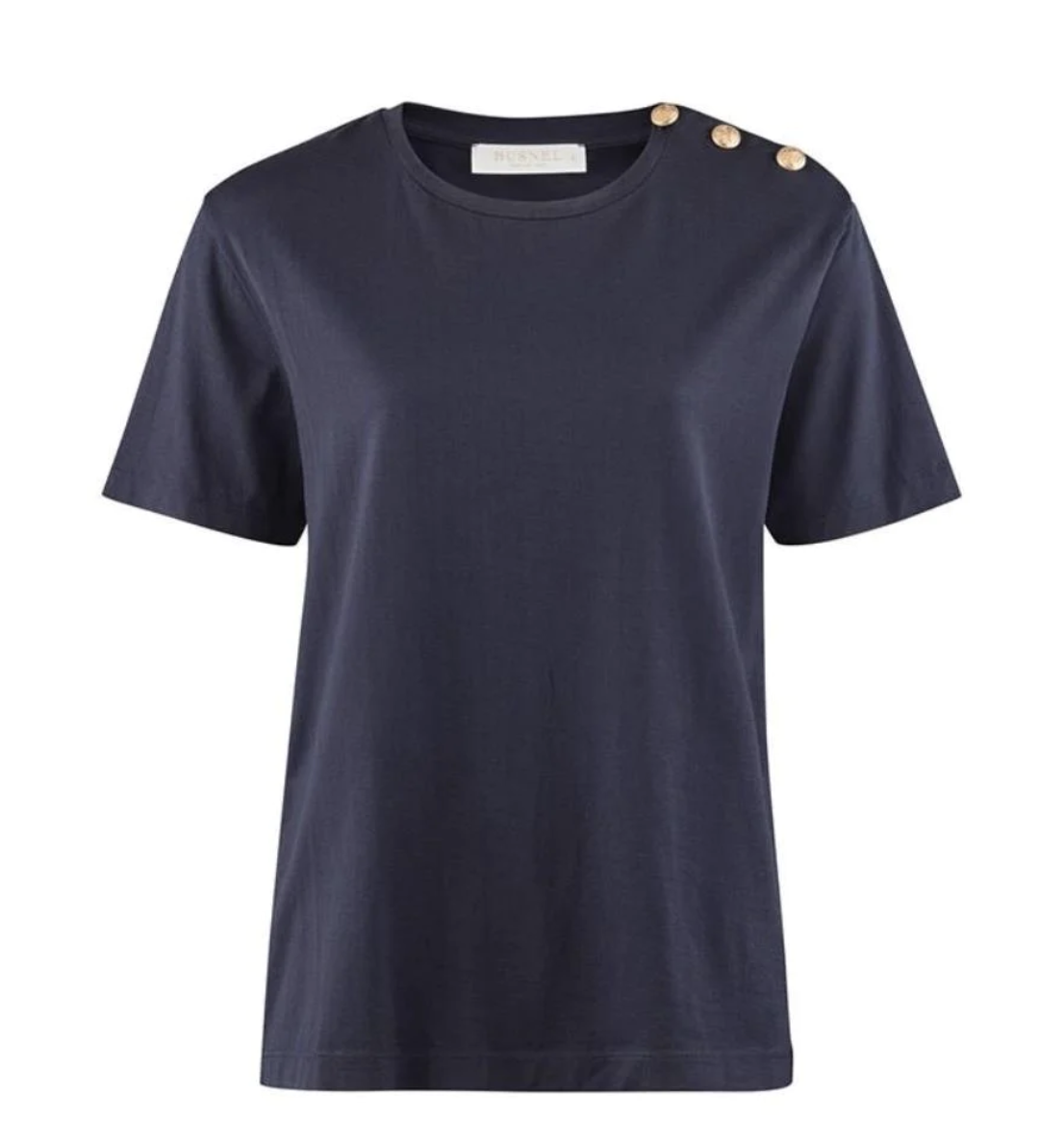 De klassiske Busnel knappene pryder ventsre skulder og gir t-skjorten det lille ekstra.