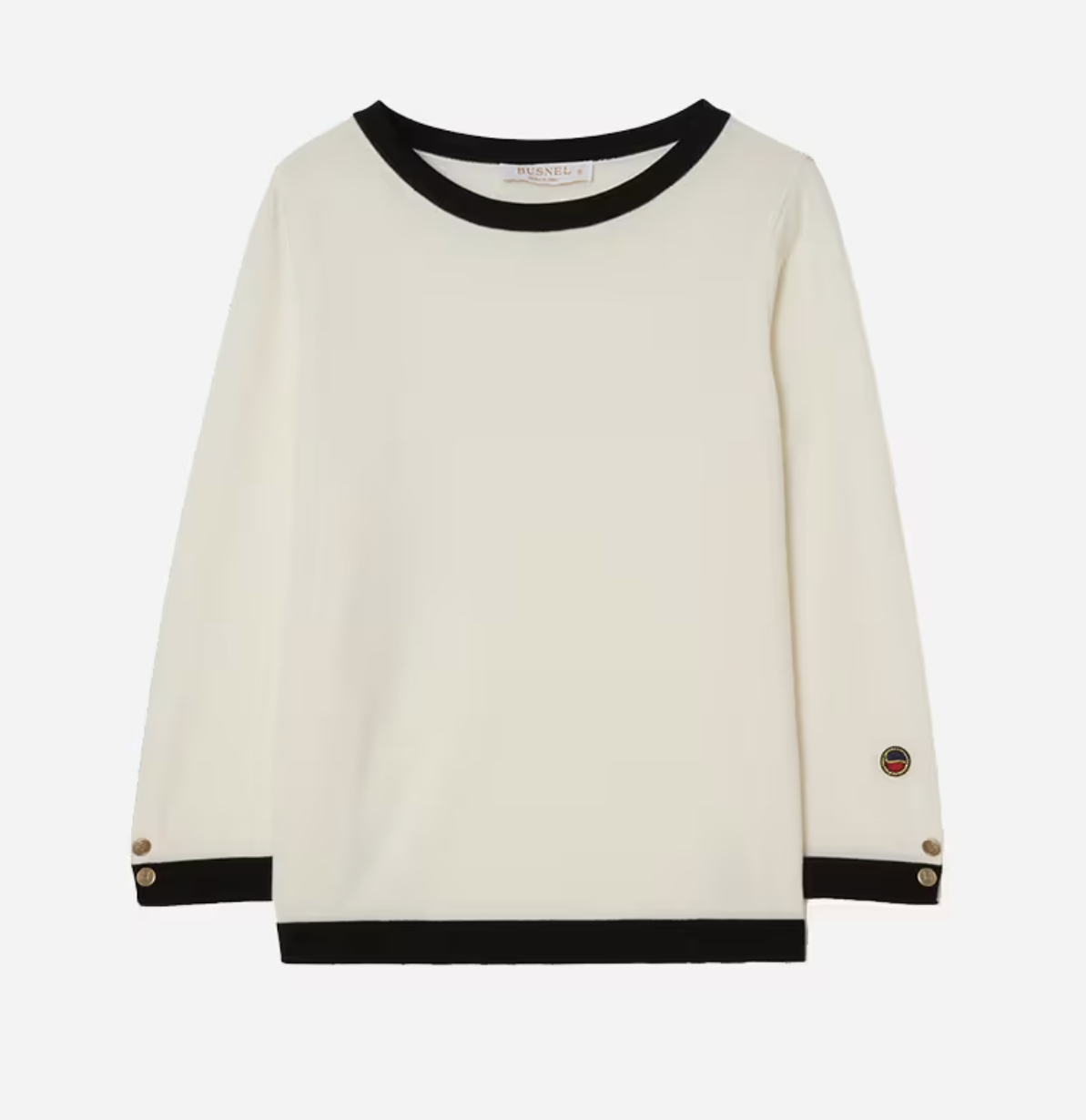 Simpel men nydelig stilren topp som kommer i en klassisk ecru med sorte kontrast kanter.
