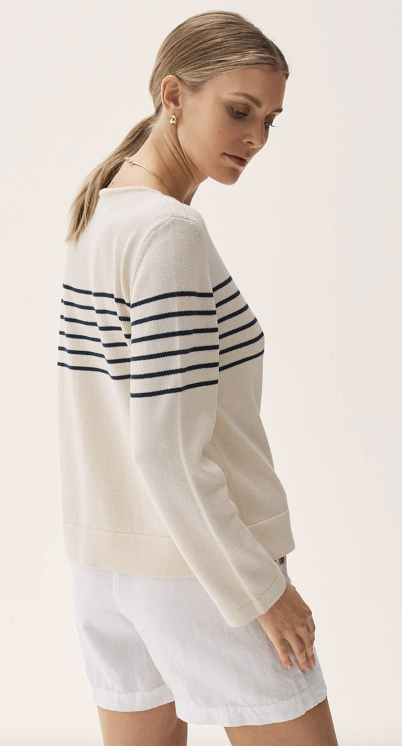Carrie Sweater Ecru Marine fra Busnel.