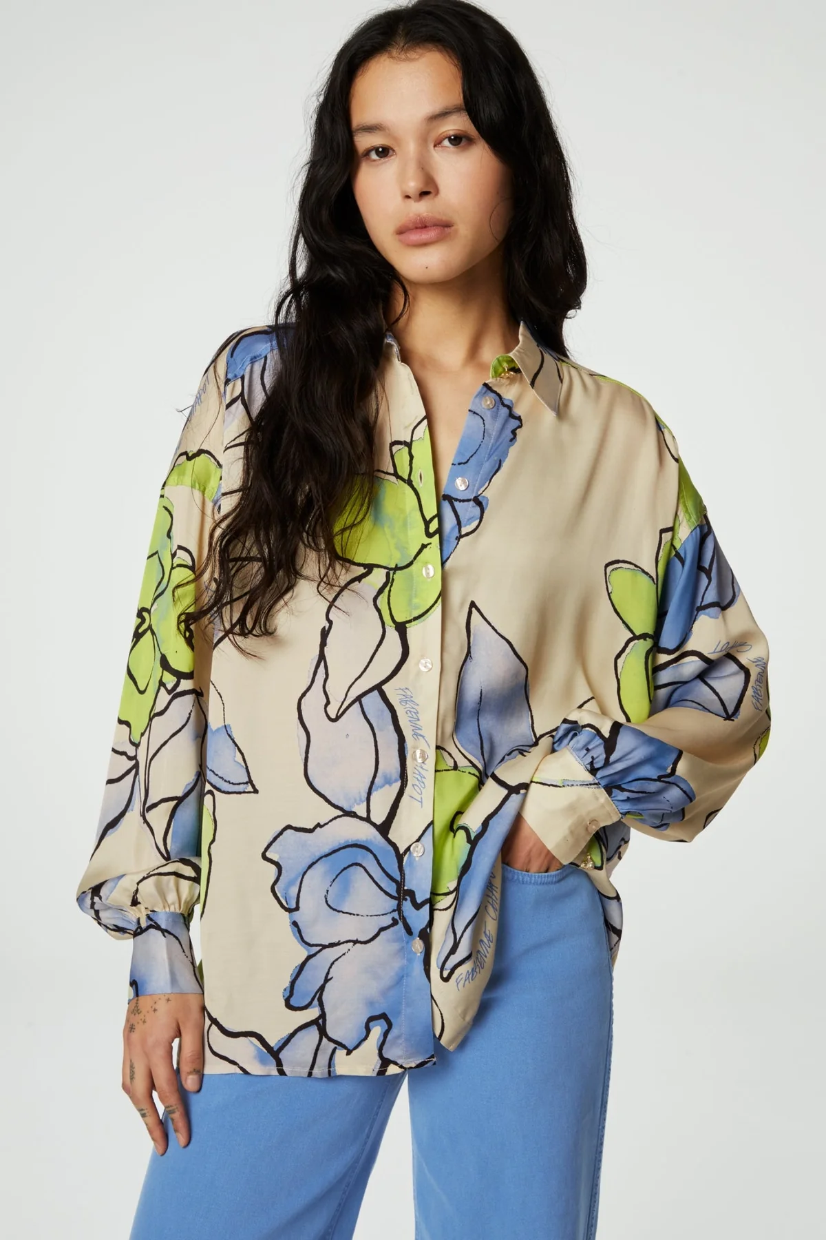 Fabienne Chapot Gabriel Bluse har ballongermer og et "Blue Fairytale"-trykk.